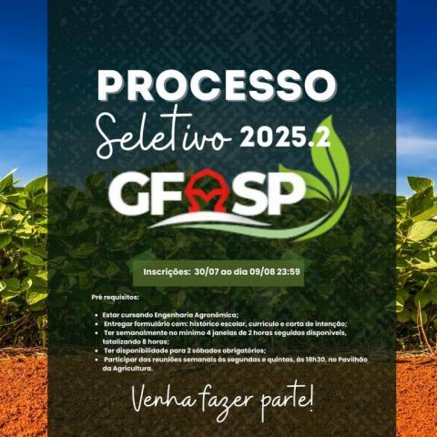 O Grupo de Fisiologia Aplicada e Sistemas de Produção (GFASP) anuncia seu Processo seletivo 2025.2.