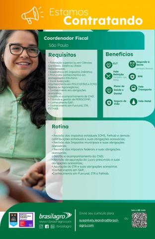 A BrasilAgro está com processo seletivo para contratação de Coordenador(a) Fiscal, para trabalho híbrido.